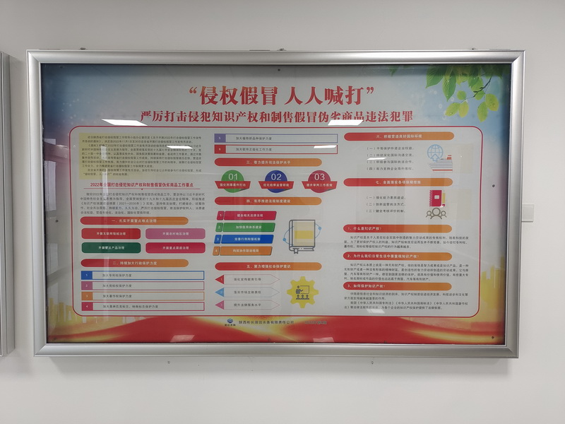 為加強打擊侵權假冒宣傳力度,切實(shí)提高員工知識產(chǎn)權意識、危機意識及防范侵權意識,公司11月份集中開(kāi)展打擊侵權假冒宣傳教育活動(dòng),通過(guò)橫幅標語(yǔ)、知識宣傳欄、公司微信群渠道,在全公司范圍內開(kāi)展宣傳警示教育。